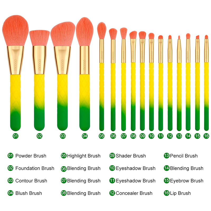 DOCOLOR PINEAPPLE 16 PIECES OF MAKEUP BRUSH SET